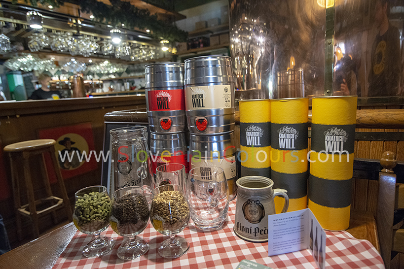 Preko zgodovine tega družinskega podjetja in mini pivovarne, ki se nahaja v sosednjem prostoru, sta nas popeljala Marko in Mile Kratochwill: